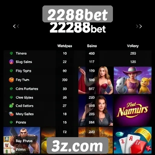 O 2288bet oferece uma ampla gama de jogos, incluindo slots, jogos de mesa como blackjack e roleta, apostas esportivas, e jogos ao vivo com dealers.